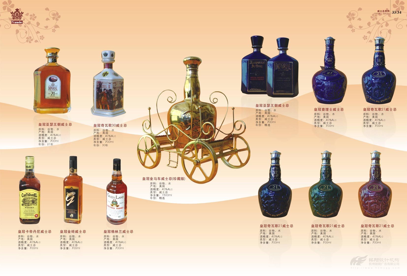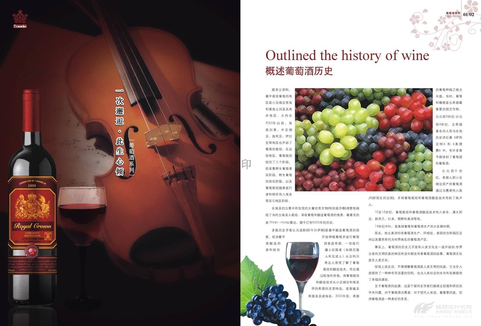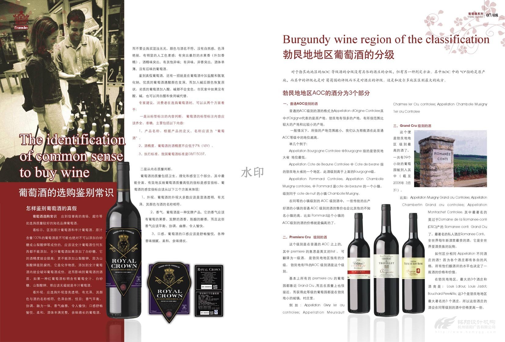 “只為懂生活的您......”,“一次邂逅·此生心傾”。美國富蘭克林酒業(yè)成立于1933年,是美國第二大品牌,宣傳冊設(shè)計概述了葡萄酒歷史,法國五大頂級酒莊,如何鑒別、鑒賞紅酒,葡萄酒的分級及餐桌禮儀等。圖文并茂,精美絕倫,是一本值得收藏的畫冊。