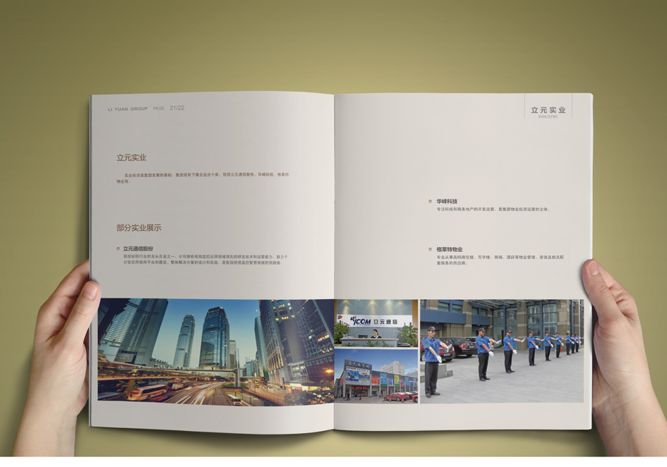 立元集團創(chuàng)建于1998年,旗下?lián)碛?0多家控股企業(yè),參股近百家上市、擬上市企業(yè),近千名員工,業(yè)務涵蓋各類金融投資、房地產(chǎn)開發(fā)、電子通信三大板塊。銘陽廣告公司先后為其提供集團宣傳冊設計、團隊攝影、資本投資畫冊設計、員工手冊設計制作、物業(yè)公司宣傳設計、大型主題會議設計、PPT設計等。