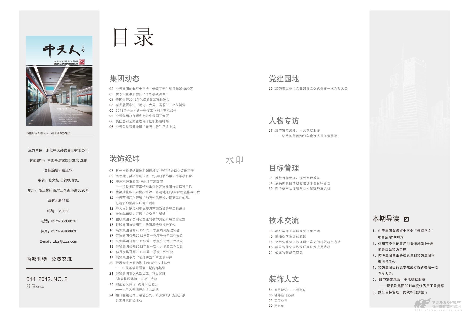中國企業(yè)500強(qiáng)企業(yè),中國民營(yíng)企業(yè)50強(qiáng)企業(yè),中天發(fā)展控股集團(tuán)有限公司(簡(jiǎn)稱“中天集團(tuán)”)是一家以土木建筑、地產(chǎn)置業(yè)、電子??化工、投資為主要經(jīng)營(yíng)業(yè)務(wù)的全國大型企業(yè)集團(tuán)。2013年總產(chǎn)值及銷售額超600億元。下轄中天建設(shè)集團(tuán)有限公司,浙江中天房產(chǎn)集團(tuán)有限公司,中天西北建設(shè)投資集團(tuán)有限公司,浙江中天裝飾集團(tuán)有限公司,浙江新嘉聯(lián)電子股份有限公司,浙江中天氟硅材料有限公司等10多家成員企業(yè)。 銘陽與中天集團(tuán)建立多年伙伴關(guān)系,為中天裝飾,中天建設(shè)等提供多次平面設(shè)計(jì)服務(wù),包括月刊、畫冊(cè)、說明書、文化形象等。